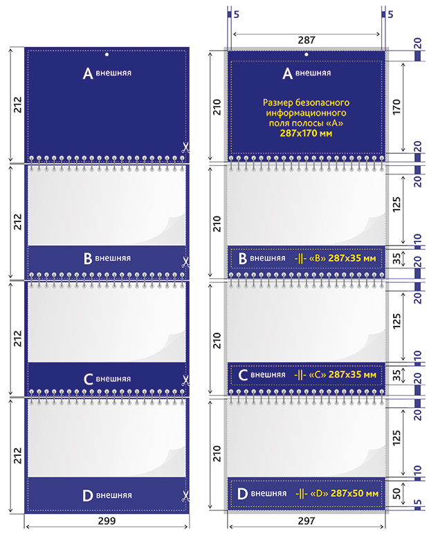 Размер безопасного информационного поля: 287x170 мм / 287x35 мм / 287x35 мм / 287x50 мм (где будет текст, логотип);